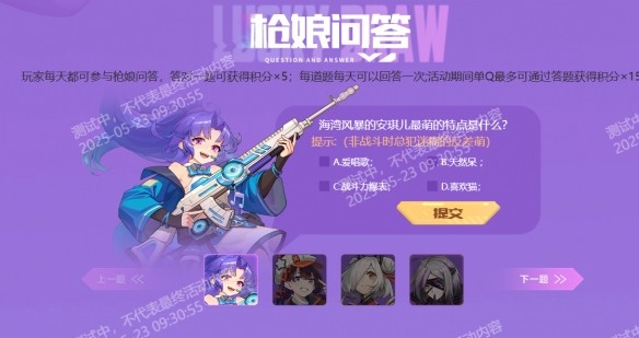 5、活動期間每天參與槍娘問答就能夠獲得積分。