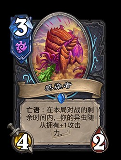 ·改動后:4/2。亡語:在本局對戰(zhàn)的剩余時間內(nèi),你的異蟲隨從擁有+1攻擊力。