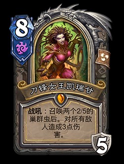 · 改動前:3/2。亡語:在本局對戰(zhàn)的剩余時間內(nèi),你的異蟲隨從擁有+1/+1。