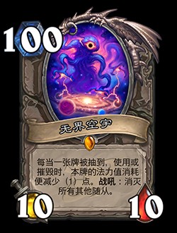 · 改動前:召喚兩只2/5并具有嘲諷的野獸。在本局對戰(zhàn)中你每發(fā)現(xiàn)過一張牌,本牌的法力值消耗便減少(1)點。