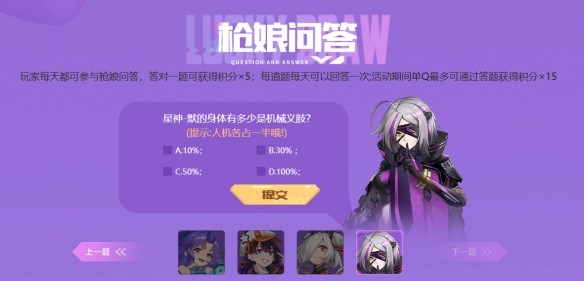 械裝戰姬槍域覺醒活動當中為玩家們提供了一個答題的玩法,很多玩家還不清楚里面的答題的答案是什么,小編為玩家們整理了最新的答案匯總。玩家們可以參考在活動當中輸入即可獲得積分。