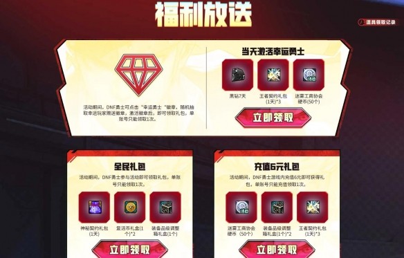 1、點擊上方鏈接即可參與活動,在該頁面可領取全民禮包和充值禮包;
