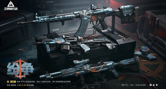 活動時間:4月29日0點~5月29日24點活動說明:紛爭-PTR-32突擊步槍、Mini-14射手步槍、SR-3M緊湊突擊步槍,紛爭系列軍牌、頭像、噴漆。獲得方式:1500三角券/三角幣