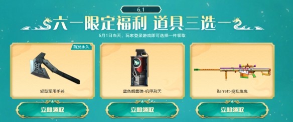 5、6月1日當天,玩家登錄游戲即可選擇一件領取。