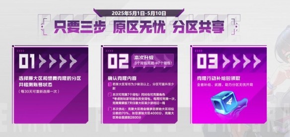 1、活動(dòng)當(dāng)中玩家點(diǎn)擊【克隆行動(dòng)3.0】就可以參與并且改大區(qū)信息轉(zhuǎn)區(qū)到其他大區(qū)游玩。