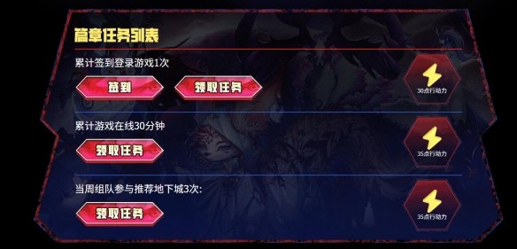 2、下方有各種篇章任務,做完可獲得行動點,完成后再來活動頁面點【領取任務】;