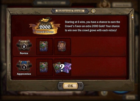 4、與普通競技模式相同,勝場越多獎勵越豐厚,但在地下競技場中持續存活還可獲得額外收益。如果你能取得6場以上勝利的優異戰績,將有機會獲得“人氣大獎”——額外得到2000金幣作為獎賞!勝場越多,獲得大獎的幾率也越大。達成最高12勝場的玩家還將傳統對戰英雄皮膚冰封鬼靈耐奧祖,以及其它更多精彩獎勵!