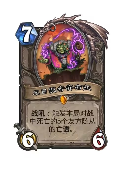 7費6/6,戰吼:觸發本局對戰中死亡的5個友方隨從的亡語。