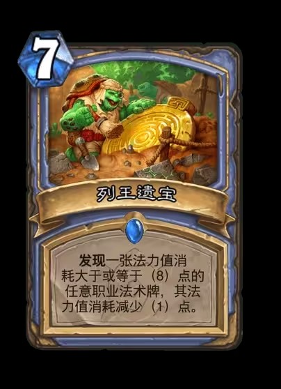 7費:發現一張法力值消耗大于或等于(8)點的任意職業法術牌,其法力值消耗變為(1)點。