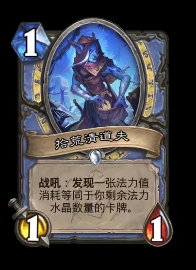 1費1/1,戰吼:發現一張法力值消耗等同于你剩余法力水晶數量的卡牌。