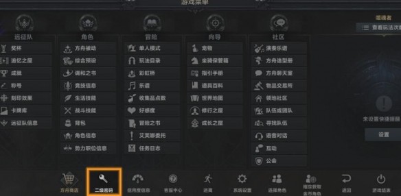 1、進入游戲打開游戲菜單,找到底下的【二級密碼】然后跳轉設置界面;