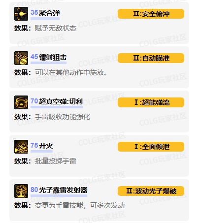 dnf女彈藥實戰非常容易丟傷害,那么具體的加點是怎樣的呢,加點技能依次為:安全俯沖、自動瞄準、超能彈流、全面傾泄、波動光子爆破,技能強化選:光子霰雷發射器、G-18C冰凍手雷、凝固汽油彈,以下就是詳細的介紹。