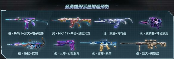 本源重鑄爐可以重鑄什么武器答:魂·9A91-烈火-電子連擊、靈·HK417-朱雀-甜蜜火力、魂·黑鯊-青花瓷等武器