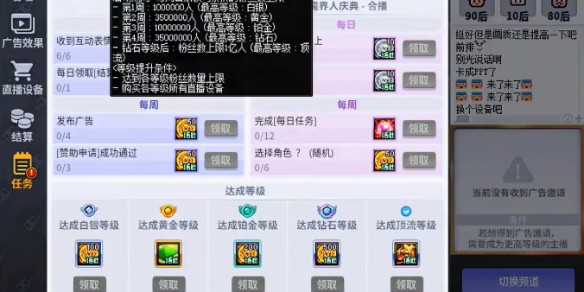 3、這個小游戲會每周解鎖對應的粉絲數的上線,黃金等級要在第二周才會解鎖。