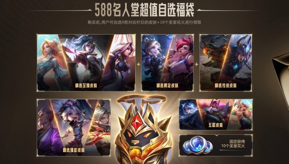 購買后,用戶可自選9款對應欄位的皮膚+10個圣堂花火進行領取