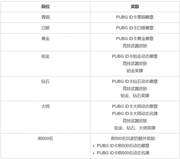 原本根據組隊形式(雙排、四排)和視角(第1人稱、第3人稱)進行劃分的競技比賽段位及RP被合并成了一個。