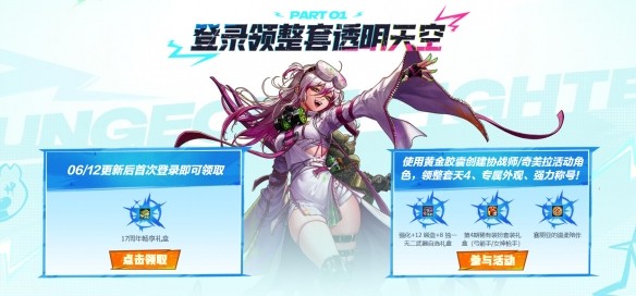參與DNF17周年登錄暢享大禮活動(dòng)可以免費(fèi)領(lǐng)天空套,那么該活動(dòng)內(nèi)容有什么呢,活動(dòng)期間登錄游戲后即可來(lái)到該頁(yè)面領(lǐng)取首次登錄獎(jiǎng)勵(lì),使用膠囊創(chuàng)建新職業(yè)還有專屬獎(jiǎng)勵(lì),從6月14日開始登錄還有其他的獎(jiǎng)勵(lì),以下就是詳細(xì)的介紹。