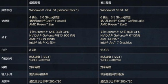 1、最低配置:4 核心,3.0 GHz 處理器、第四代Intel®Core™ Haswell、AMD Ryzen™ Zen