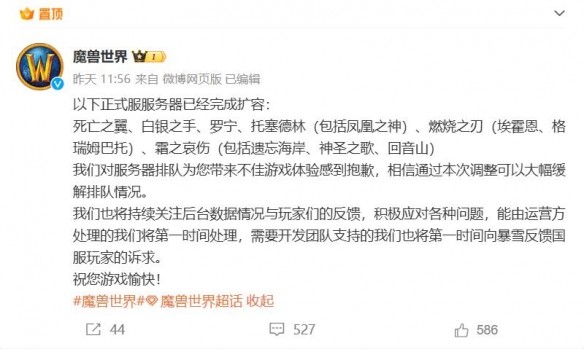 以上就是小編為玩家們帶來的魔獸世界正式服完成擴容的相關內容,更多相關內容請繼續關注!