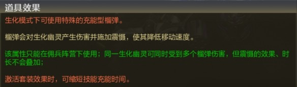 該屬性只能在傭兵陣營下使用;同一生化幽靈可同時受到多個榴彈傷害,但震懾的效果、時長不會疊加;