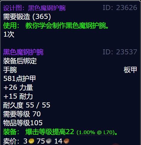 《魔獸世界》黑色魔鋼護腕圖紙獲得方法