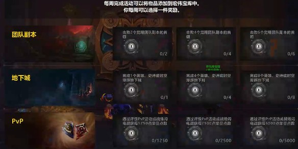 3、接著點擊宏偉寶庫就可以出現宏偉寶庫的團本、地下城和pvp的任務。