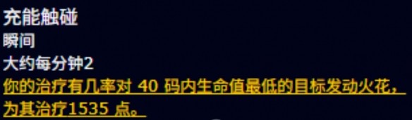 4、充能之觸:治療技能有幾率觸發火花,為40碼內生命值最低目標恢復1535點生命值。