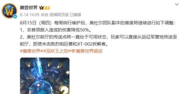 《魔獸世界》奧杜爾團隊副本難度調整
