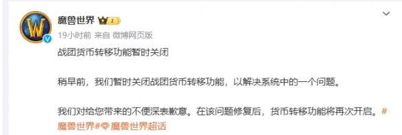 《魔獸世界》貨幣轉(zhuǎn)移功能暫時(shí)關(guān)閉情況