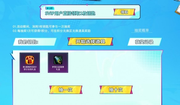 3、要是可以在該頁面用來參與抽獎,如果是SVIP用戶可額外領取1枚鑰匙;