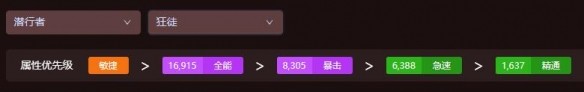 敏捷>16,915全能>8,305暴擊>6,388急速>1,637精通