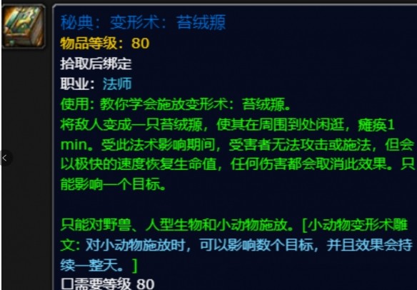 6、隨后80世界的法師就可以點擊秘典,來學習這個變形術了。