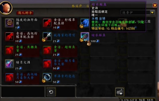 3、隨后就可以使用500條暗月刃喉魚兌換暗水鰩魚這個坐騎了。
