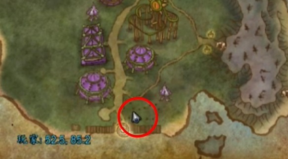 2、接著來到暗月馬戲團的最下方,坐標(52.5,88.6)的位置。