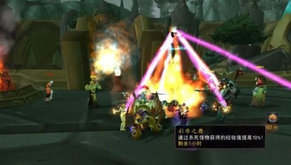 3、篝火邊上有彩帶柱,點(diǎn)擊它可以獲得一小時(shí)的彩帶之舞buff,擊殺怪物能提高10%的經(jīng)驗(yàn)值。