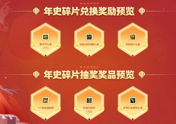 4、獲得的年史碎片還能去兌換裝備品級調(diào)整禮盒或者去用來抽獎。