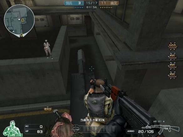 冷色調(diào)室內(nèi)場景,空曠視野,需集中火力防守。