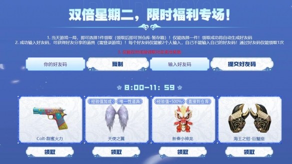 2、4月29日領取道具后再次利用輸入好友碼就可以再次領取道具。