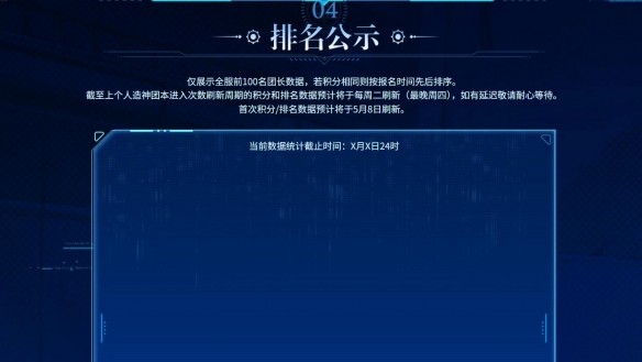 2、報名后在4月26日06:00之后當前的團長賬號下通關人造神普通/困難模式的角色都會進行積分;