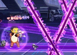1、自己腳下出現一個方向標,引導Boss攻擊對應的地板,處理成功則地板變為紫色(碰到金黑色的掉血);