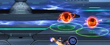 鎖定玩家,此時場地數顯綠色的光圈,去撞綠圈上的方塊固定切屏。