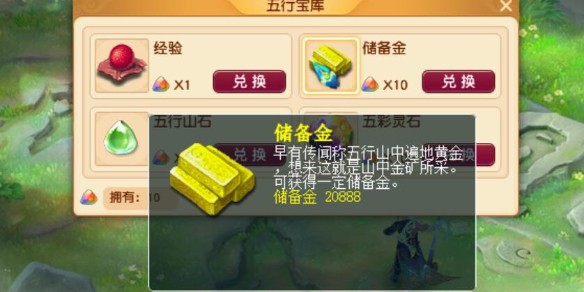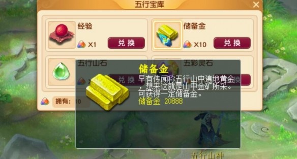 完成天命副本的游記任務將獲得五行之力,去找五行山神用五行之力兌換儲備金。
