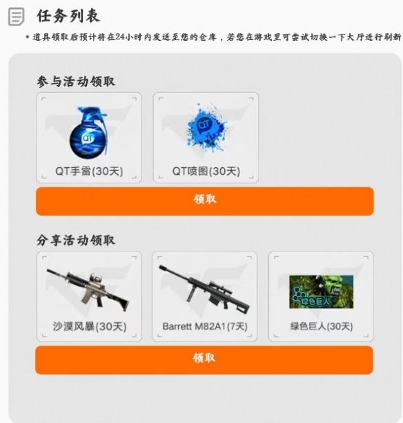 穿越火線上線全新老兵集結活動,在這個活動當中玩家們可以參與簽到就能夠領取到經典大炮(7天)、沙漠風暴(30天)及綠色巨人(30天)等獎勵,玩家們可以參考下面的入口前往活動當中參與。